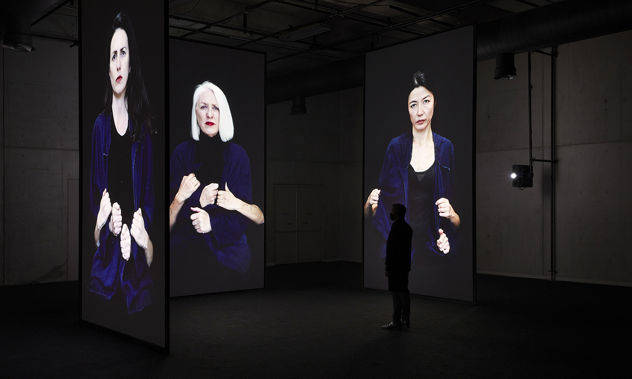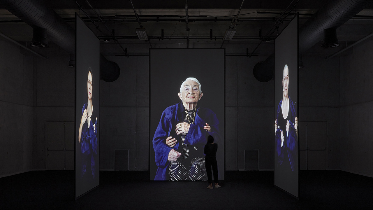 Ecdysis is a scientific term describing the process by which reptiles shed their skin to allow for new growth. Cherine Fahd’s video installation brings together forty-four large-scale video portraits of women of different ages and walks of life, engaged in an act of struggle and surrender with the artist. Luminously projected in a darkened space, the shedding of skin suggested by these portraits raises tensions between control and release, bringing us to the precipice of transformation. Each subject’s performance tells a different story spanning resistance and acceptance, tenderness and strength, authority and vulnerability.